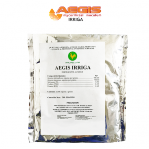 Micorrizas: Glomus instraradices – Glomus mosseae: Aegis Irriga, a base de Micorrizas contiene = 1,400 esporas por gramo de producto (de las cuales son 700 esporas de Glomus intraradices/gramo +700 esporas de Glomus mosseae/gramo).Mejora el crecimiento de la raíz pivotante e incrementa el desarrollo de las raices laterales (cabellera).